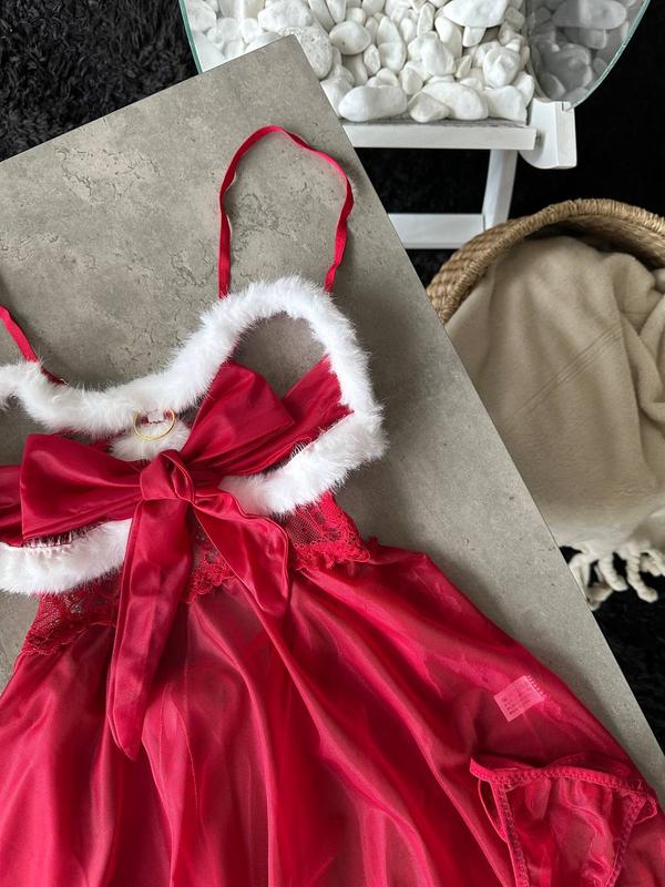 Отвертная ночная рубашка для времени вдвоем. Изготовлена из нежной сетки и кружева, с акцентами меха на груди. В комплект входят трусики.