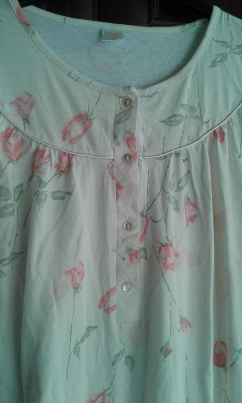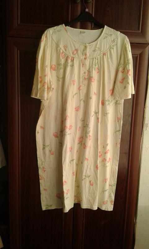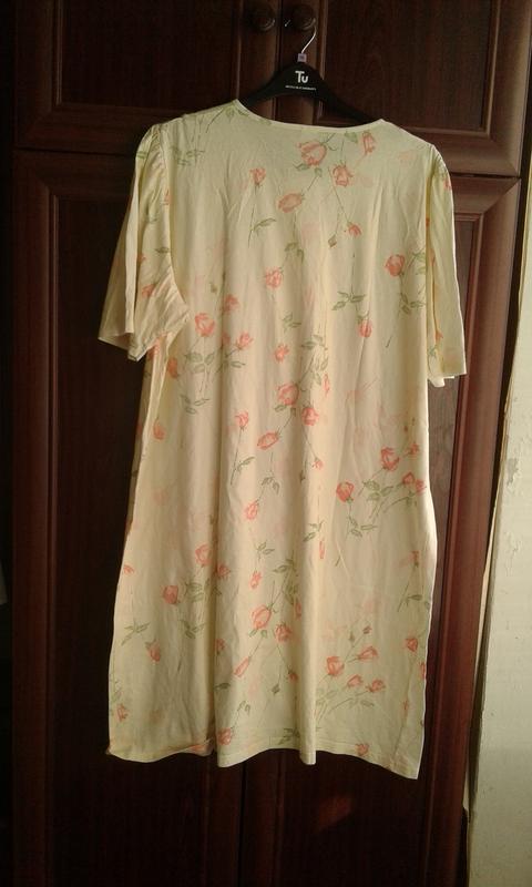 Трикотажная желтая ночная рубашка с коротким рукавом .Супер батал . INFINITY woman Германия .100% хлопок — мягкий, дышащий, приятный к телу.🔹 Длина: чуть ниже колена. Принт: изящная роза — акцент на женственность и уют.Впереди застежка на планку на четыре перламутровые пуговицы . На кокетке впереди .Идеальна для комфортного сна или домашнего отдыха. Свободный крой не сковывает движения. Отличный вариант для лета!.Замеры :Ширина плеч-47 ,ПОГ-70 , ПОТ-69,5 , ПОБ- 73 ,Длина-107,5 Длина рукава-32,5 .