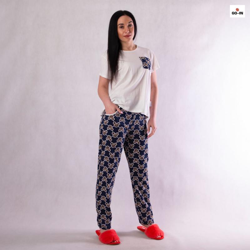 Женская летняя пижама футболка со штанами, с ярким рисунком. Полотно кулир