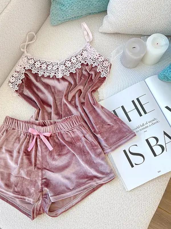 Женская велюровая пижама, шорты и майка. Ткань мягкая и приятная к телу. Майка прикрашена кружевом, Брителі регулюются.
