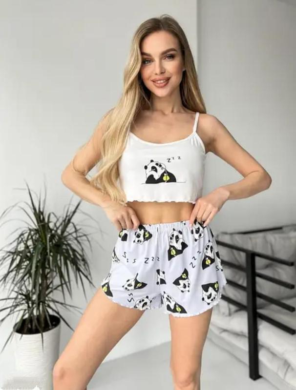 Пижамы женские s-42 m-44 l-46 xl-48 майка топ+ шорты на высокой посадке