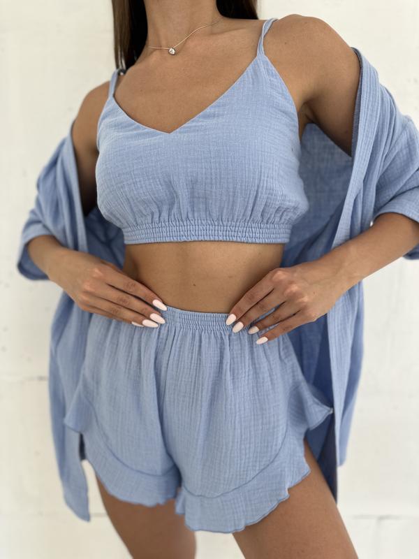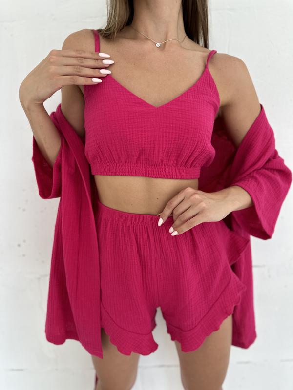 ✂️ Топ на регулируемых бретельках, шорты на высокой посадке. Длина кимоно 75см