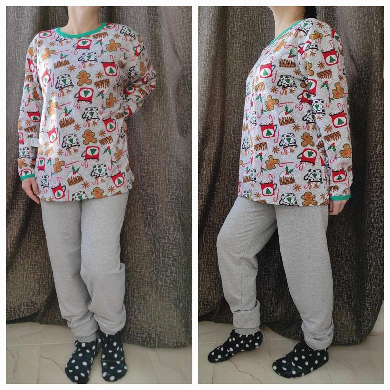 Материал хлопок - 100%, ткань футер, а ведь сама байка - внутрь с небольшой подушкой.