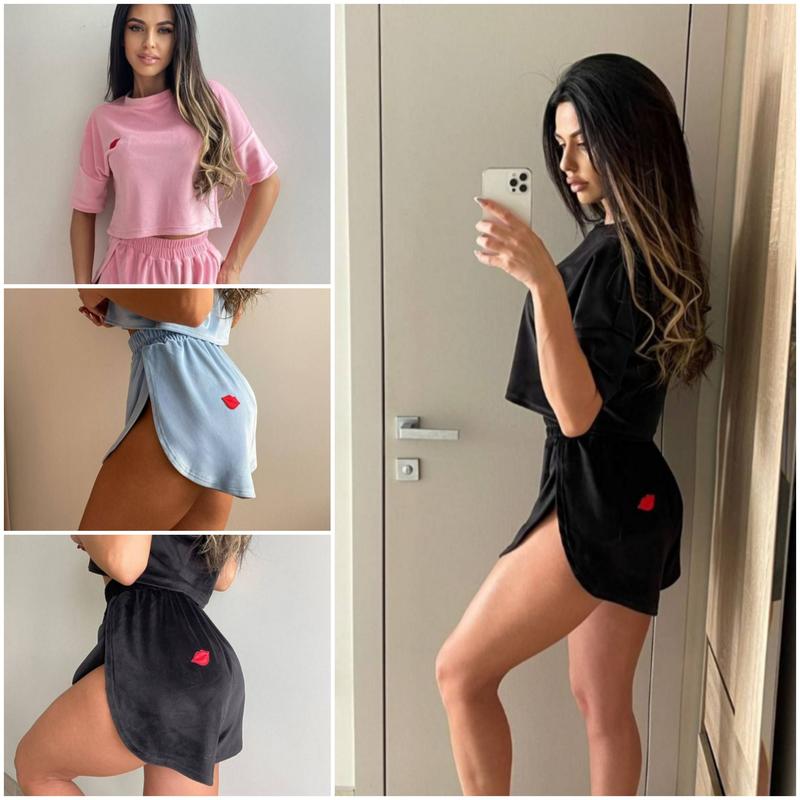 Пижама ( костюм для дому )Тканина : турецький велюр Розміри 42-44,46-48Колір : Барбі , мʼята , блакитний , чорний