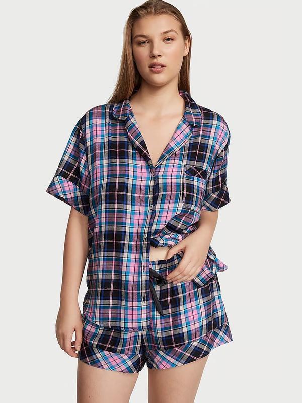 Стильный дизайн. Фланелевая пижама с шортиками от Виктории Сикрет имеет элегантный дизайн с модным узором, который делает ее не только удобной, но и стильной.