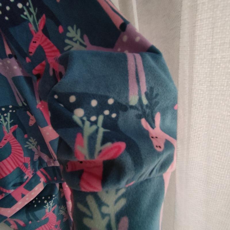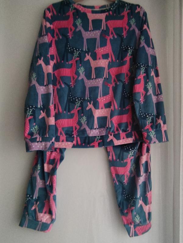 Велюровая стильная пижамка ( домашний костюм). ткань чрезвычайно мягкая, приятная на ощупь, яркие цвета. Невероятно комфортная вещь. Состояние новой вещи.
