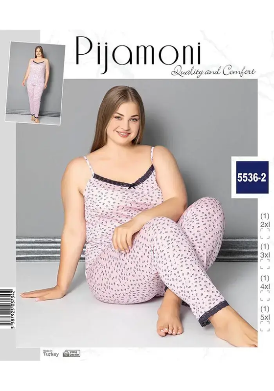 Женский батальный пижамный комплект двойка из 100% вискозы, произведенный в Турции, создан для высоких, шикарных и уверенных в себе леди, которые ценят комфорт и стиль даже дома. Этот комплект включает в себя и легкую майку и удобные штаны, обеспечивая максимальный комфорт и элегантность.