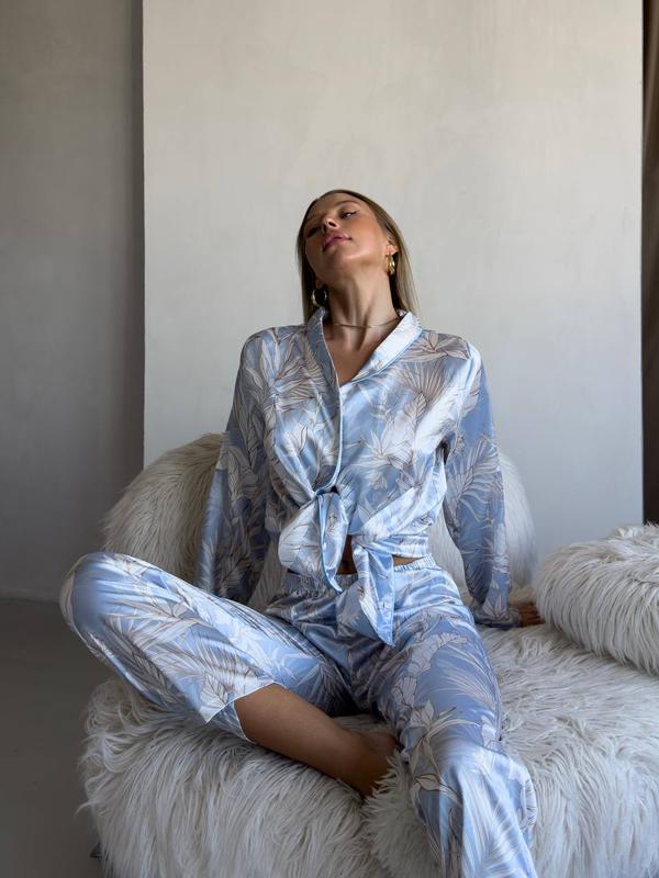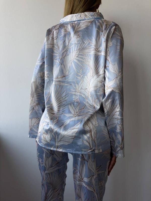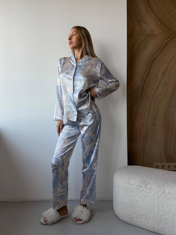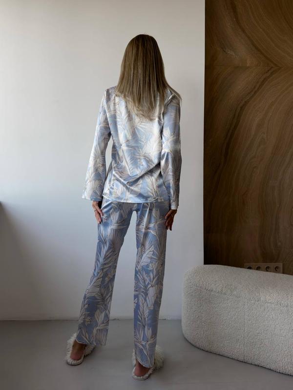 Сатиновая пижама нежного пастельного оттенка с изысканным блеском. Рубашка с аккуратным воротником, украшена пуговицами, подчеркивающими элегантность. Брюки свободного кроя с мягкой резинкой на талии, обеспечивают комфорт и легкость движения. Идеальное сочетание комфорта и стиля для уютных ночей и расслабленных утренних моментов.