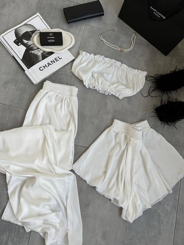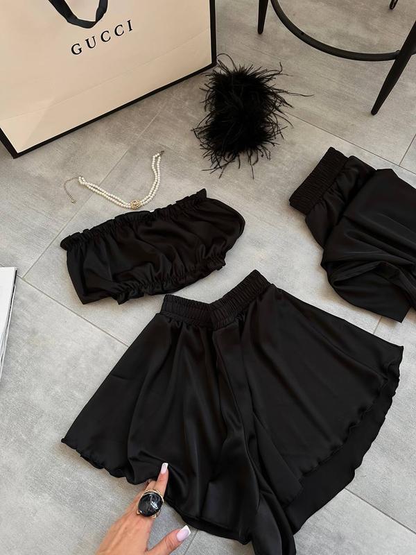 Когда хочется быть красивой и дома - выбирайте нашу шелковую пижаму тройку, очень легкая и приятная к телу, шортики свободного кроя, топ на резинках👌🏻