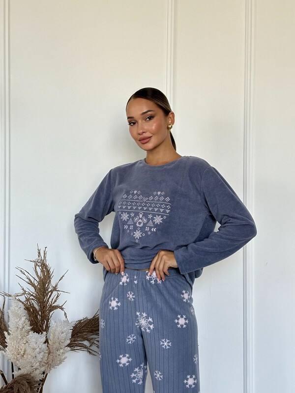 ✨ Комфортная пижама из Турции для уютных вечеров дома! ✨ Доступна в размерах: S, M, L, XL Материал: мягкий флис, который дарит тепло и комфорт 💖 Дизайн: стильный зимний узор с снежинками, создающий атмосферу праздника ❄️ Спешите приобрести, ведь таких моделей немного! 😊