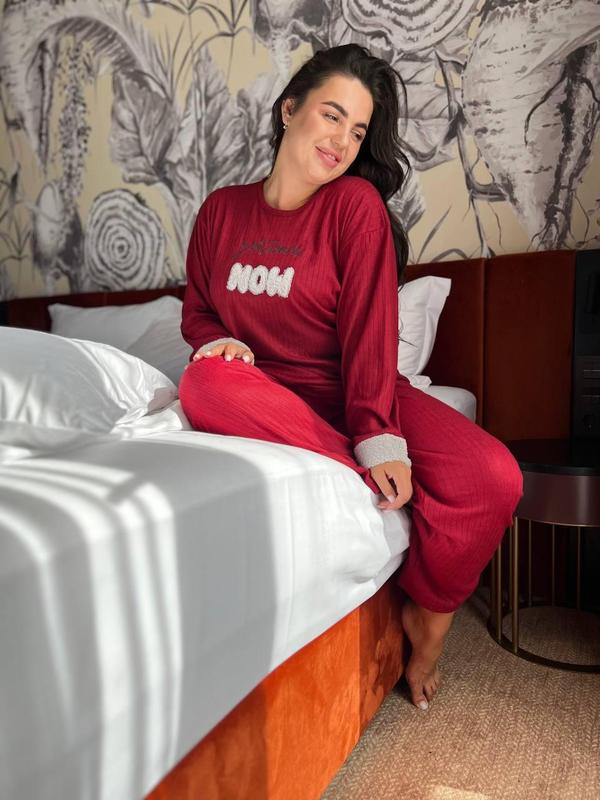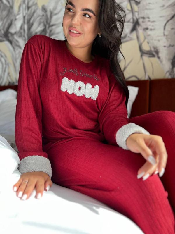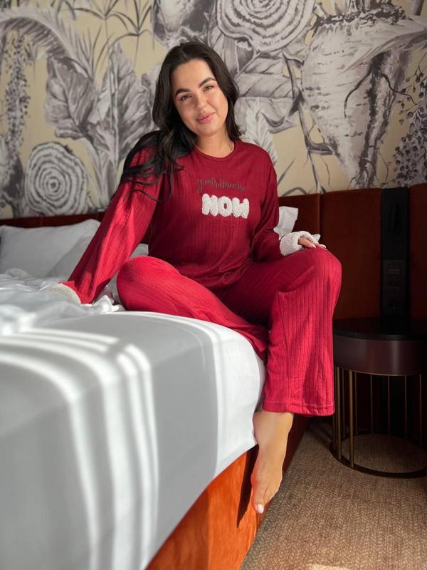 Пижама бордового цвета Домашний костюм Стильная пижама теплая