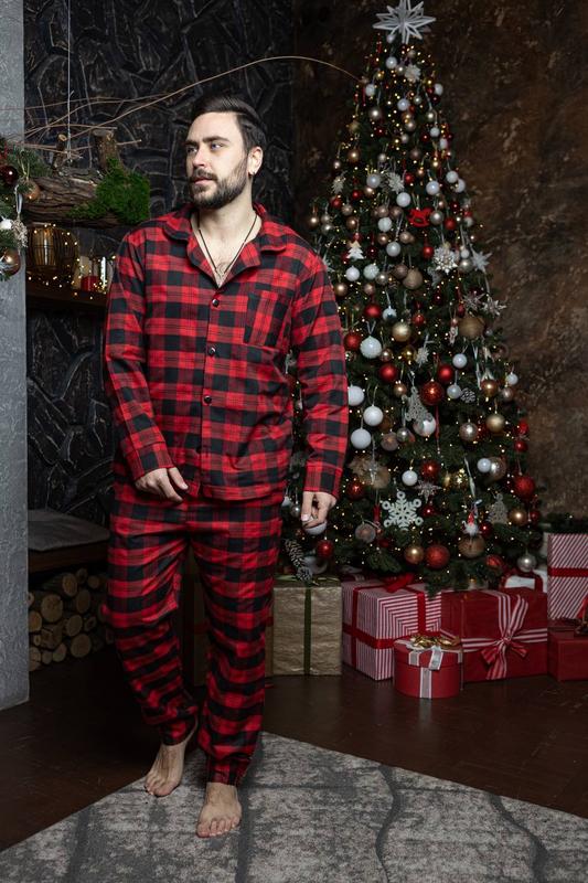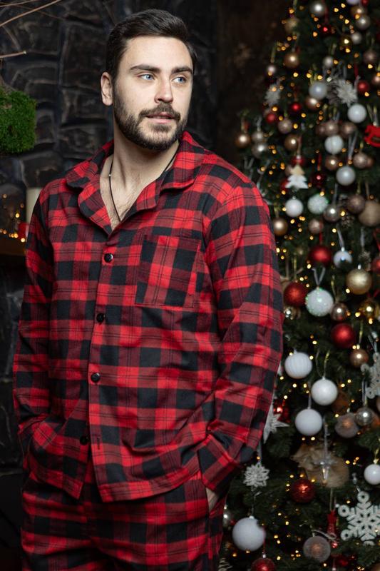 Фланелевая пижама рубашка и штаны в клеточку красная