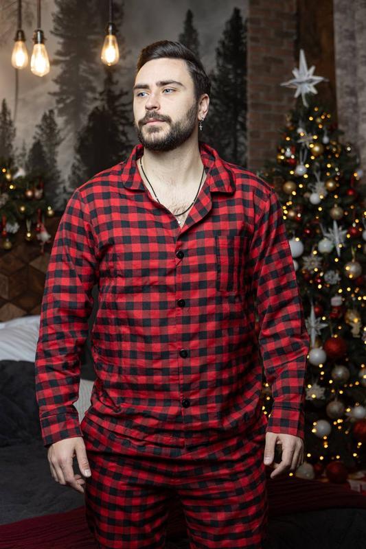 Фланелевая пижама: рубашка и брюки мужская женская унисекс хлопок натуральная