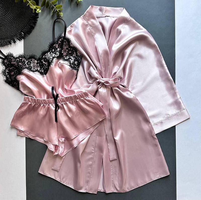 Халат и пижама из атласа, красивая пижама и халатик атлас