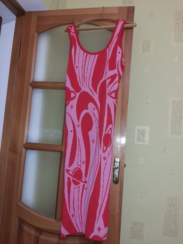 Довге червоне вязане плаття з розрізами довге в'язане плаття