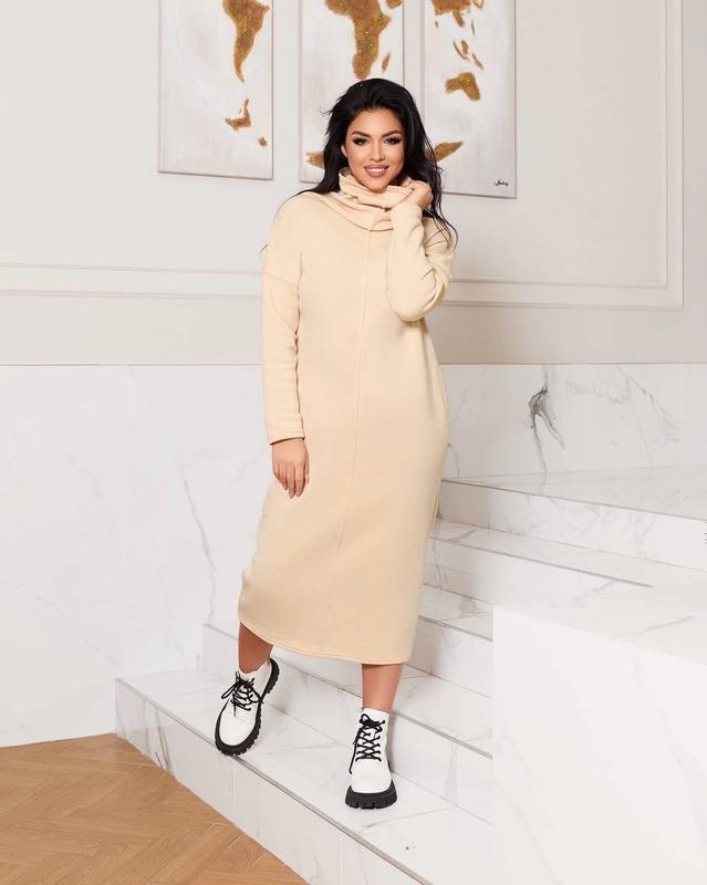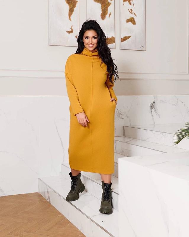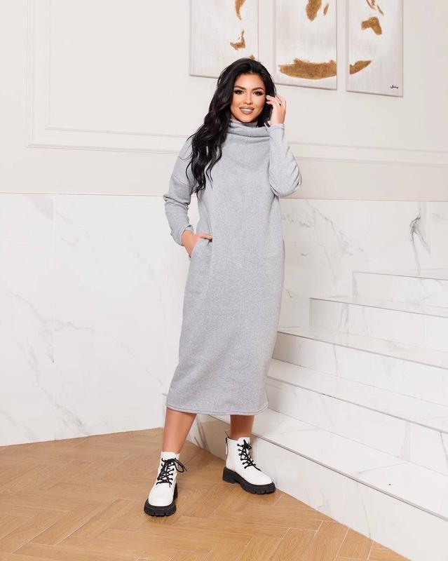 #жіночасукня▪️Сукня▪️Артикул: S2029/233▪️Розмiр: ▫️42-44, 46-48, 50-52▪️Тканина: тринитка/фліс▪️Колір: ▫️сірий, гірчиця, пісок