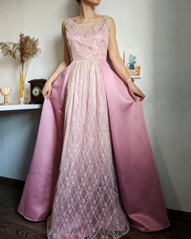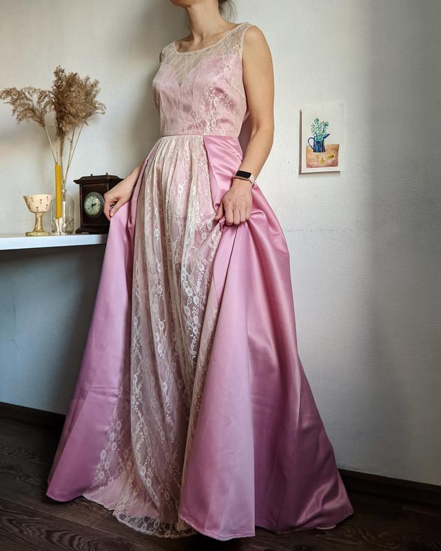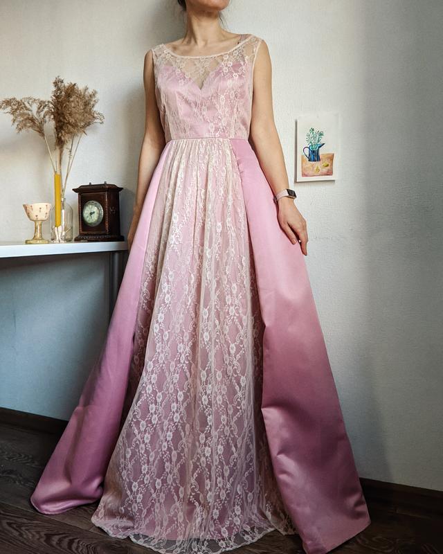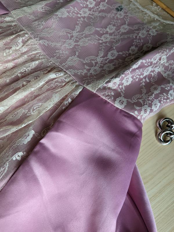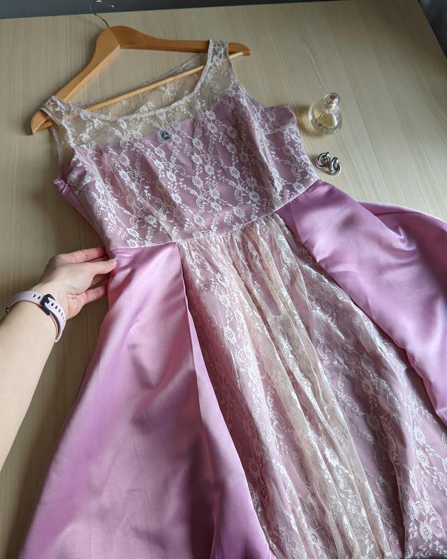 Прекрасное платье, очень пышное, с нежным кружевом 🌷размер L, на меня великовато (на фото)молния сбокув груди 51 смв талии 39 смрост на фото - 166 смткань плотная, отлично держит форму