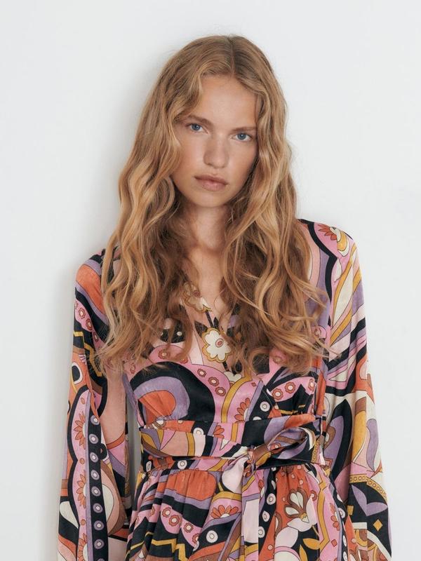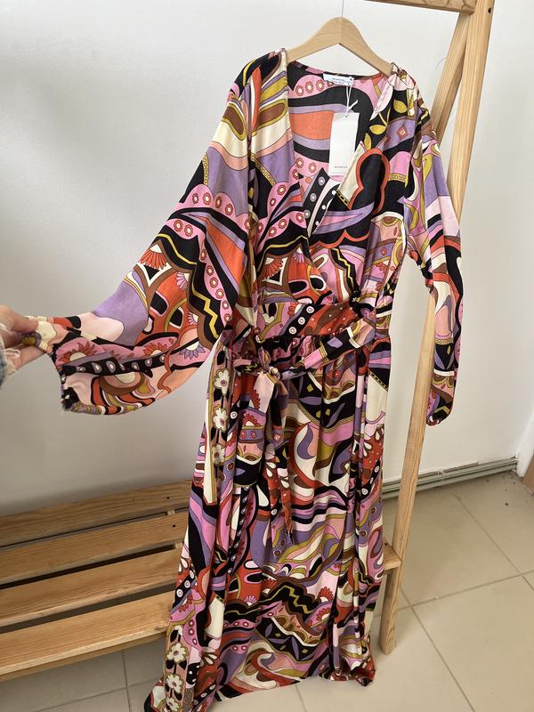 Новый, размер 44V-образный вырездлинные рукава с оформленными резинкой манжетамизавязывающий поясразрез спередидлина меди