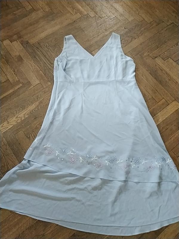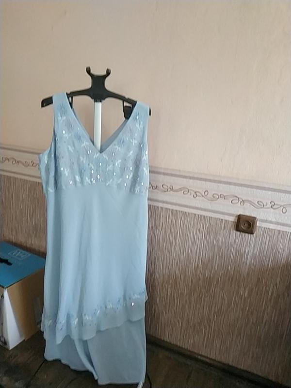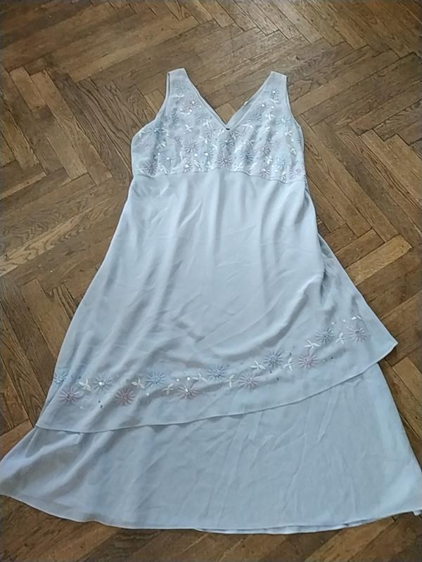 прекрасное длинное платьице стройнит,классно смотрится на фигуре. Ткань шелковистая пог54 см ,с боку дщмейка. поб62см. длина 152см и нежное платье 56 размера.