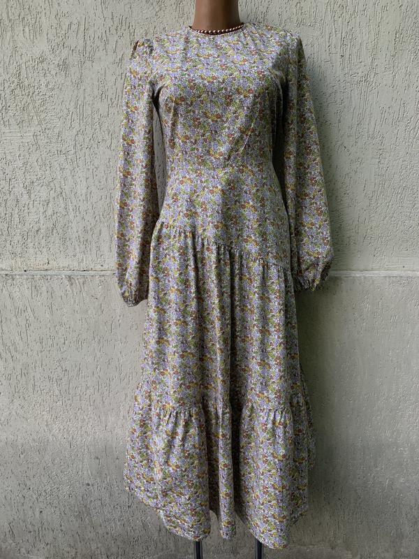 Качественное макси платье с длинным рукавом, манжет на резинке, сзади змейка до пояса, внизу рюша