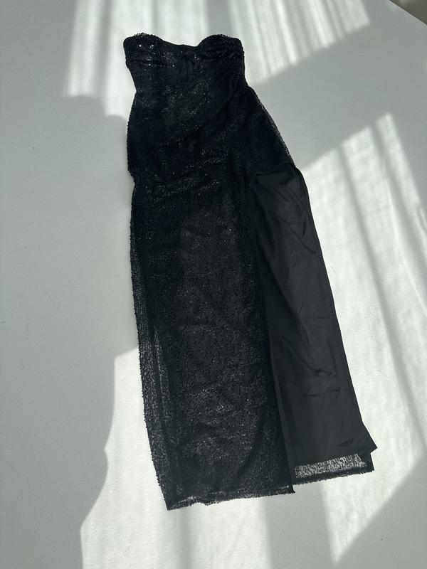 Новое платье вечернееС разрезом, обнаженной ножкойЧерный цвет в пайетках, переливается очень красиво Вечерний вариант, или на выпускной