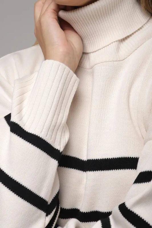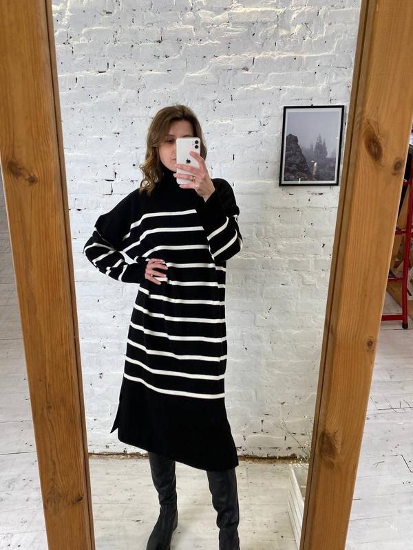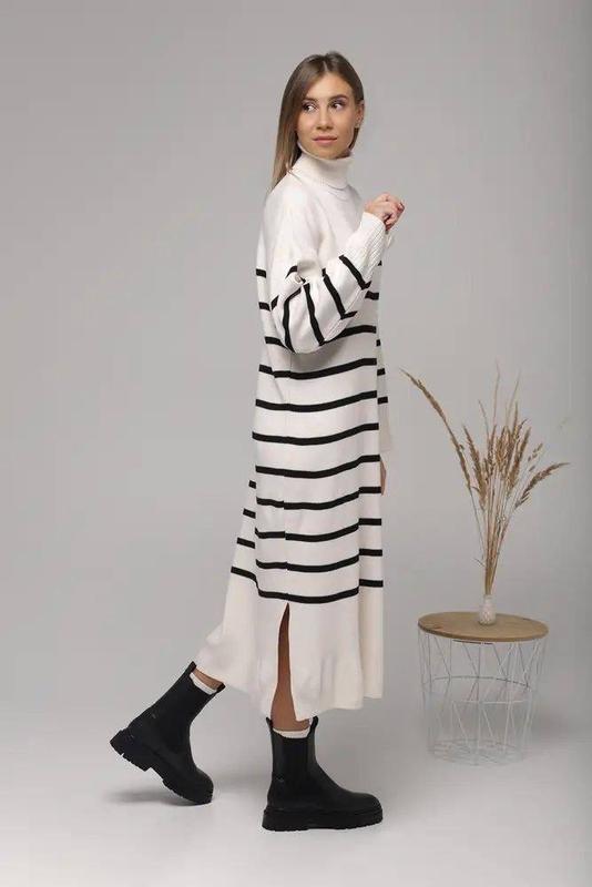 Код 2056В’язана сукня у смужкуЦвета: молоко и черный Длина 110 см Размер универсальный 42-54Турция Состав:50% коттон