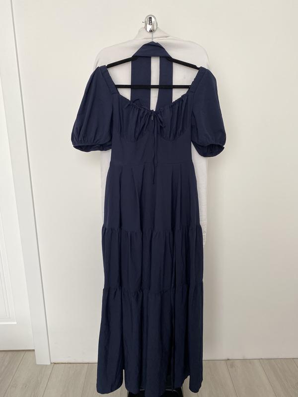 Женское платье синего цвета. Размер М-Л. Купили для фотосессии. В идеальном состоянии. В комплекте идет пояс.