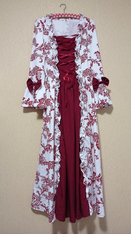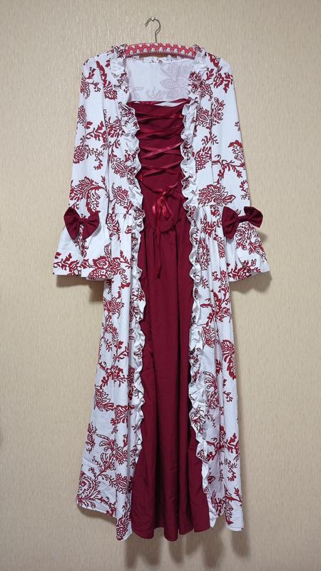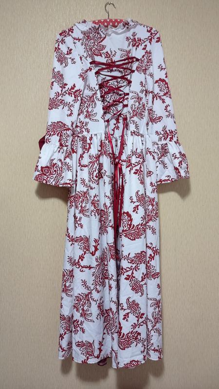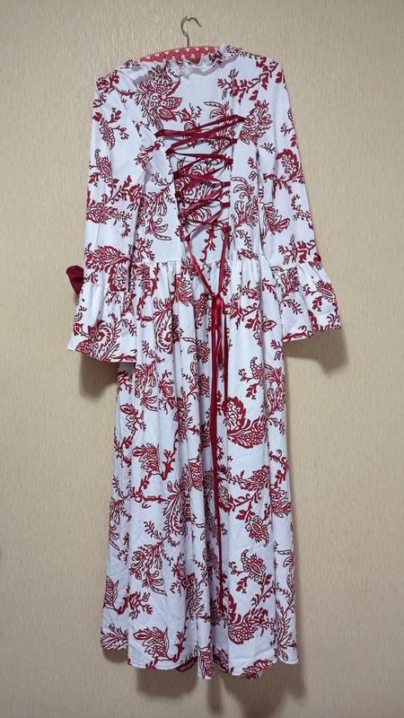 Невероятное долгое очень оригинальное и праздничное платье. Состава с тканью отсутствует, пожалуй полиестер. Но тяжелая, приятная на ощупь, красиво ложится по фигуре. Выглядит - нет слов) Размер M, но за счет того, что регулируется спереди и позади шнуровками, садится бомбезно и на S. Плечи - 38, длина - 44+96. Талия - 40, подмышками - 44, бедра - свободные. Рукав - 64 см. Стан новой вещи, без дефектов. Идеально подойдет для фотосессий, праздников, вечеринок. И в жизни - почему бы не?)