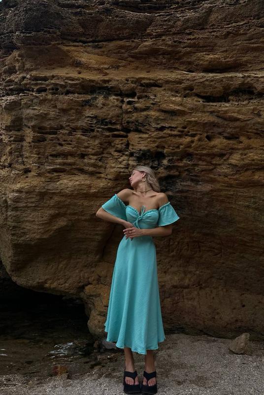 Очень красивое и такое нежное платье, ее можно надеть как на каждый день так и на каждый праздник. Выполнена из приятного к телу муслина. Муслин - современный материал, состав хлопка 100% легкий, идеален для летней жары. Жатая фактура материала делает изделия из муслина удобными в уходе и стильными на вид. Вы будите не перевершенные в ней ❤️