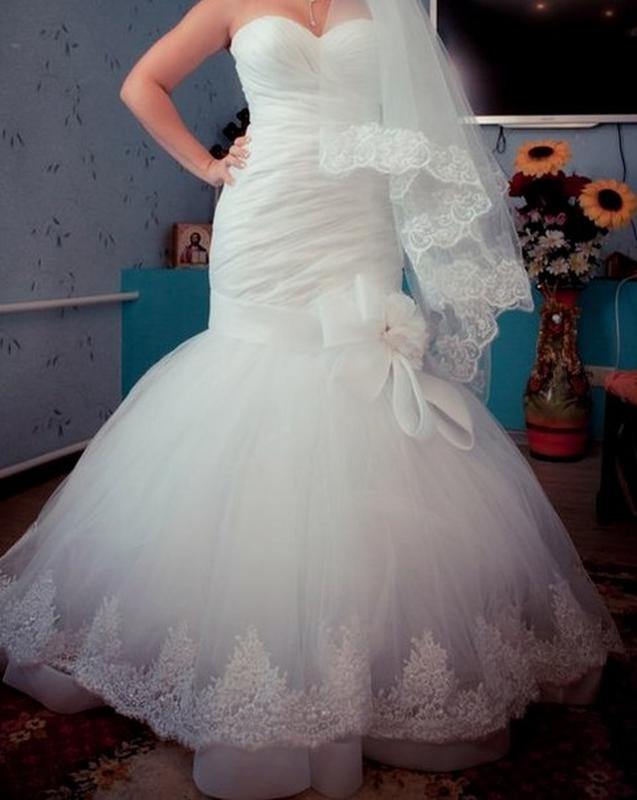 Продам свадебное платье,размер 44-46,"Рыбка",на рост 1,65 -1,70 +10-12 см каблук.Цвет: белый.Есть небольшой шлейф. Мягкий прямой силуэт,идеально подчёркивает фигуру, на фото просто шикарно, не венчанное. требует ремонта .цена символическая . Покупала почти за 9000