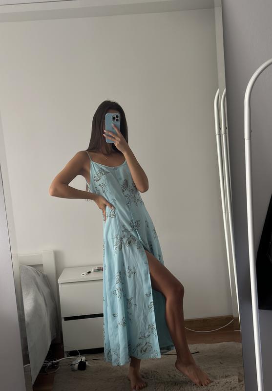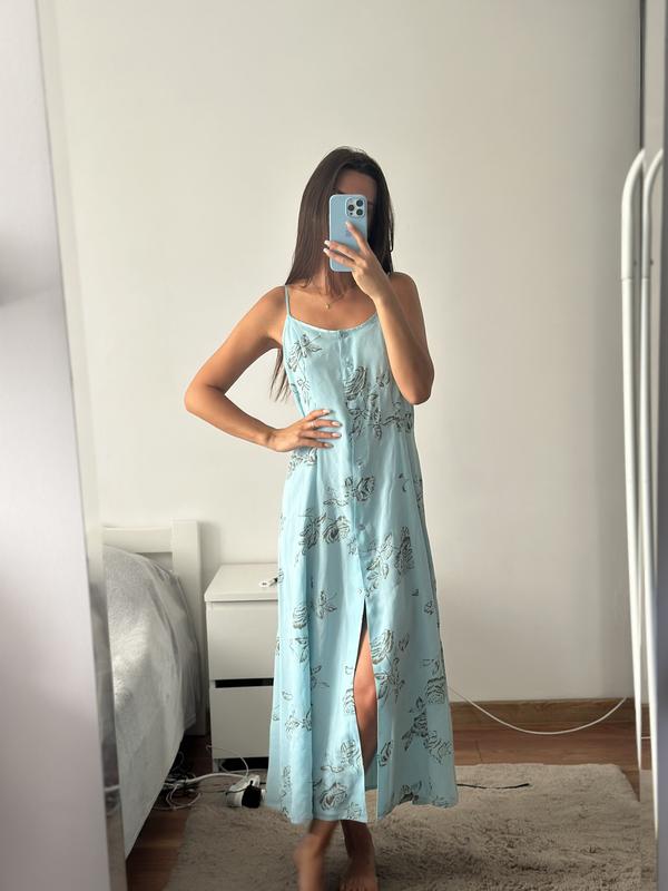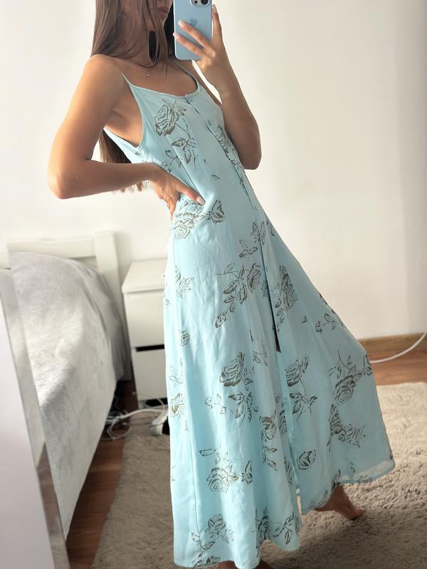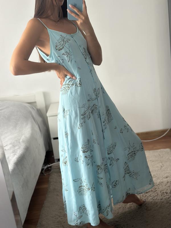 Великолепное платье, нежно голубого цвета и цветочный пастельный принт Она замечательная, размер Л Ог 46-48 см , от 45 см , об 65 см , довжина 125 см