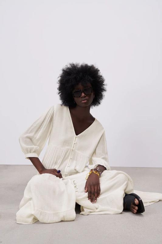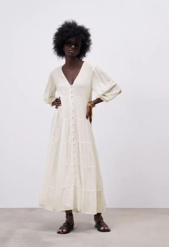 Очень красивое макси платье Zara. Женственное, нежное, струящееся. На подкладке. Красиво будет смотреться, как с балетками/босоножками/шлепками, так и с коротенькими сапожками-казаками. Размер указан-XS, но платье отлично сядет и на S, за счет своего кроя (я как раз ношу размер S) Состояние новой вещи (было надето всего один раз) Последнее фото-платье на мне.