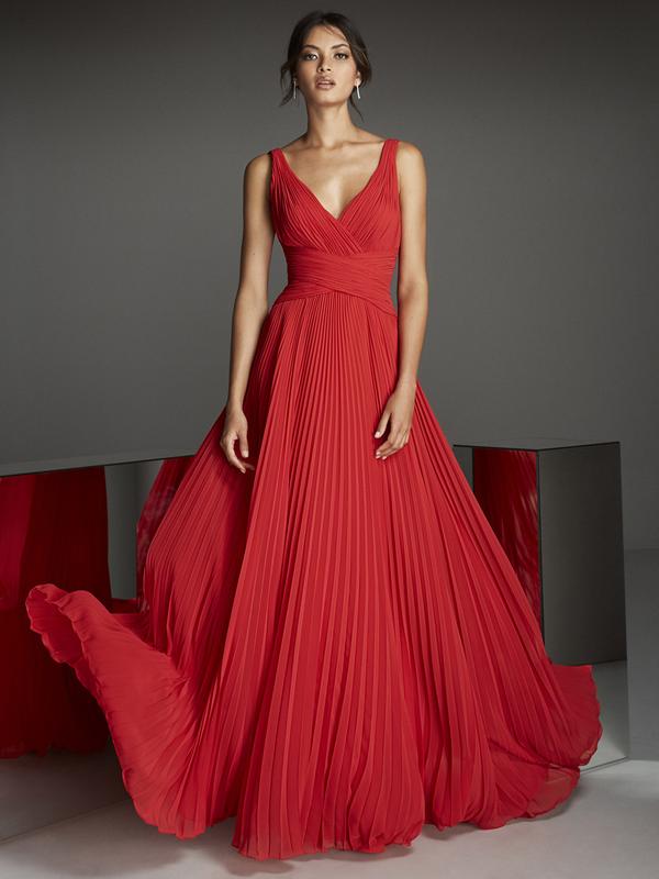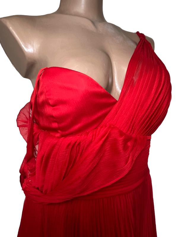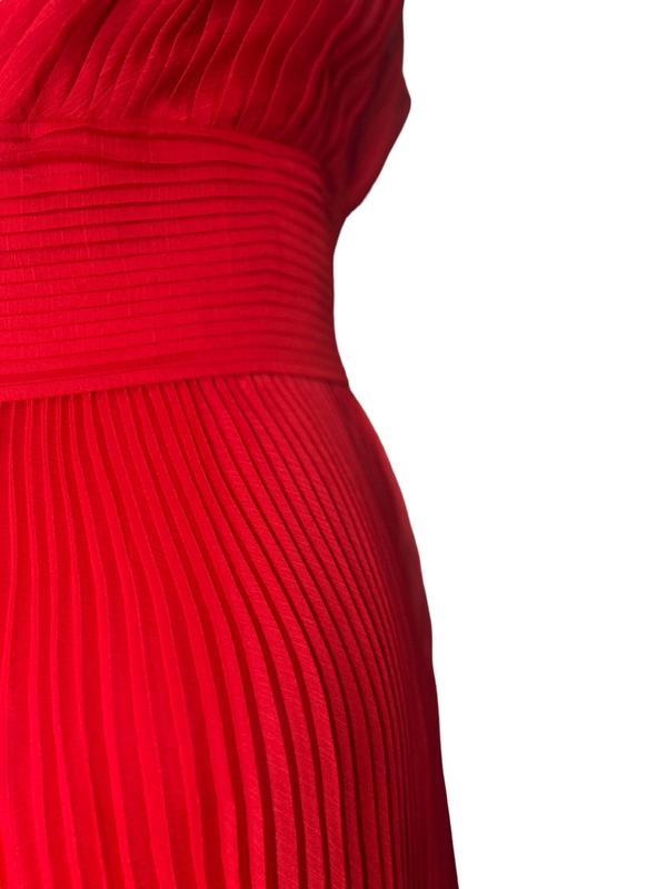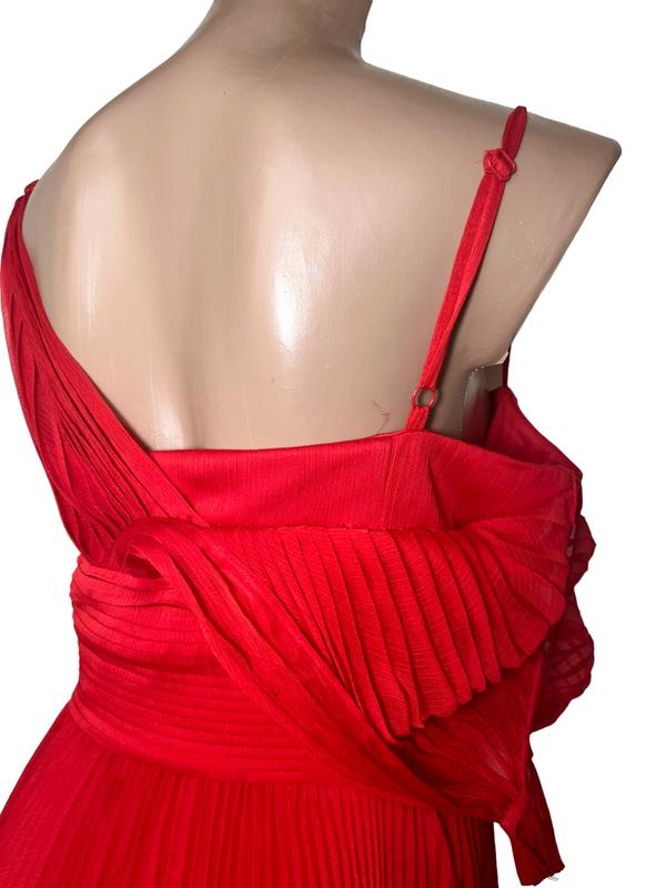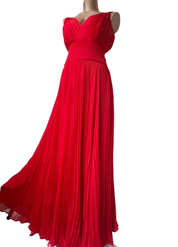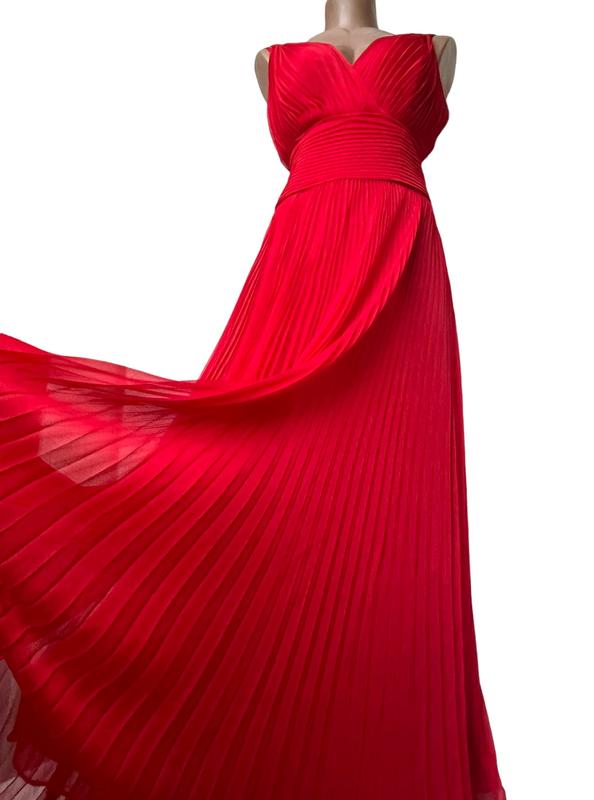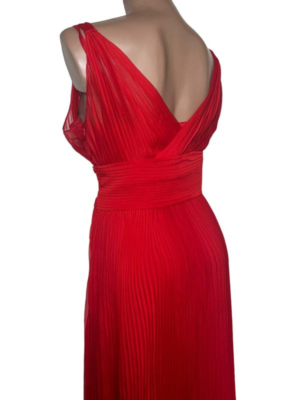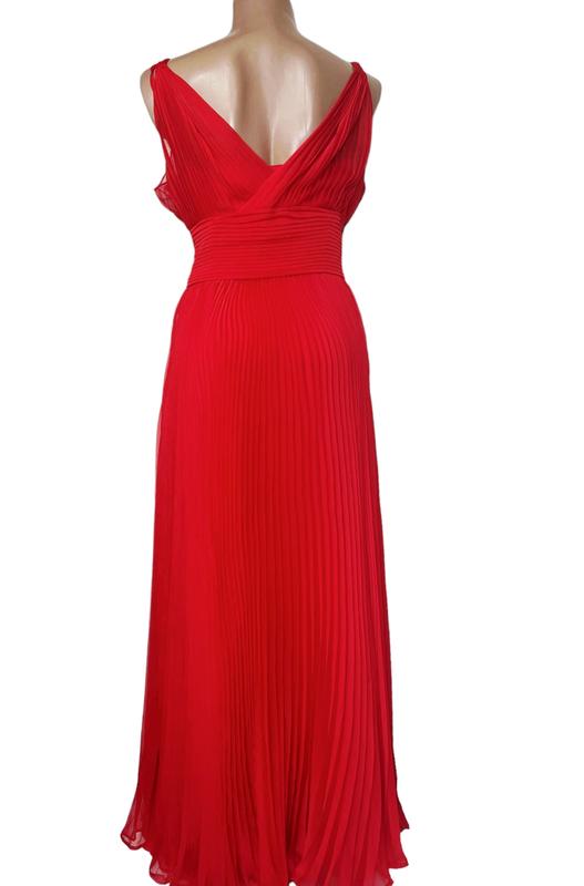 Coast Вечернее плиссированное красное платье. V-образный вырез. Глубокий вырез/декольте Регулирующие бретели, встроенный лиф.