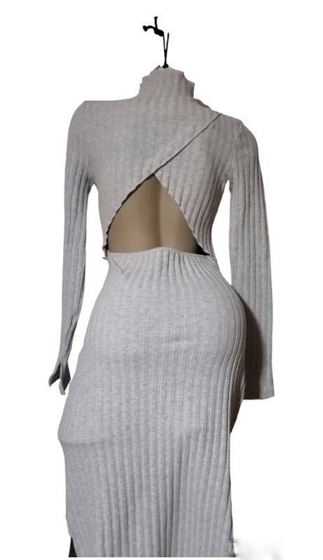 Нова сукня.Комір стійка.По бокам розрізи.Тканина важка щільна.Довжина 114Плечі 34Рукава 60Груди 38-54Талія 31,тягнеться до 44Стегна 39-54