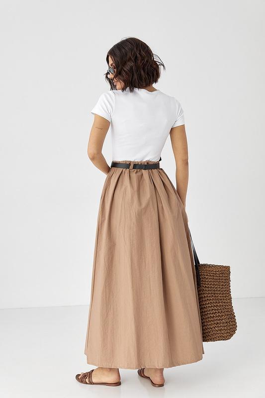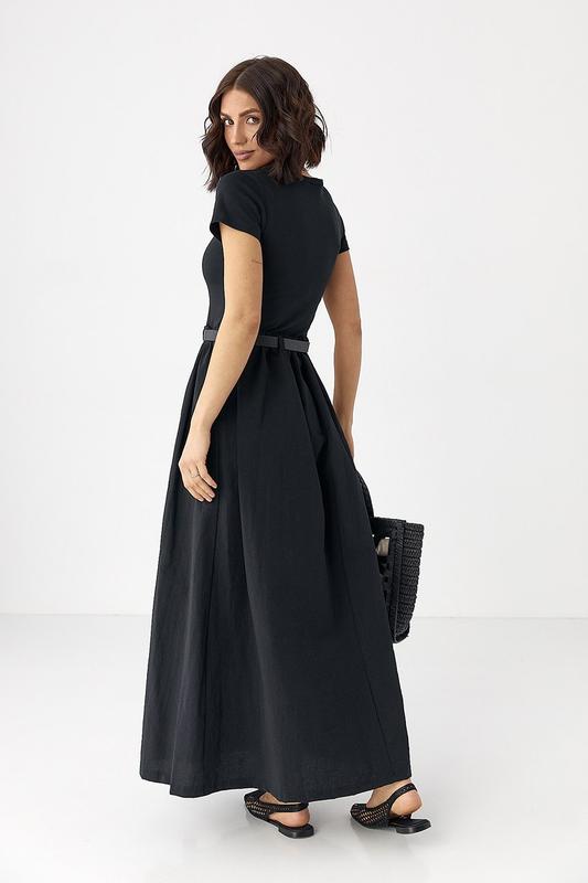 Женское длинное платье с поясом - это стильный и удобный вариант для элегантного вида. Верх платья выполнен из мягкого трикотажа, который приятно облегает тело, подчеркивая природные формы.