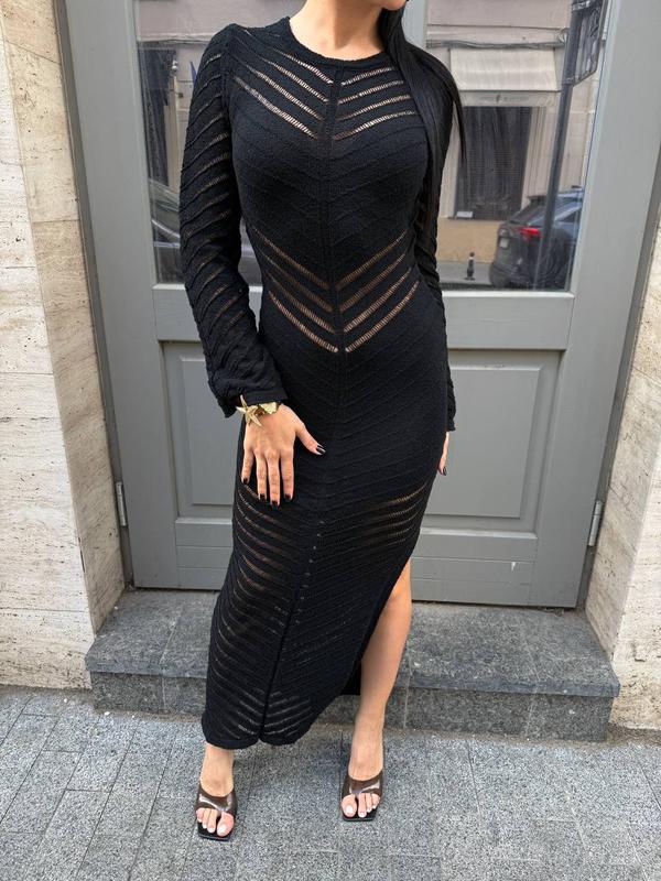 Хорошее длинное вязаное платье с длинными рукавами