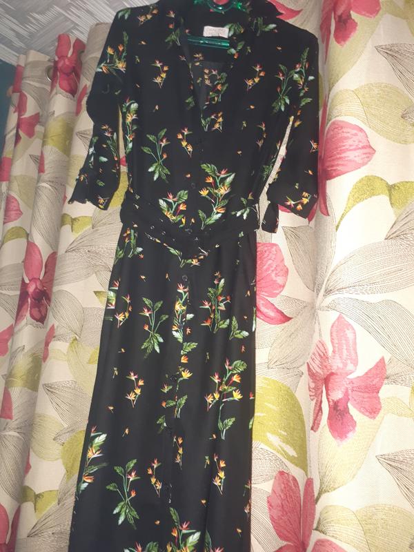 Стильное, длинное черное платье на пуговицах красивое на высокую девушку.