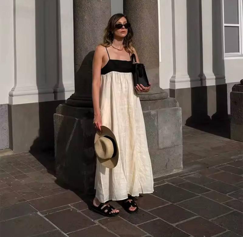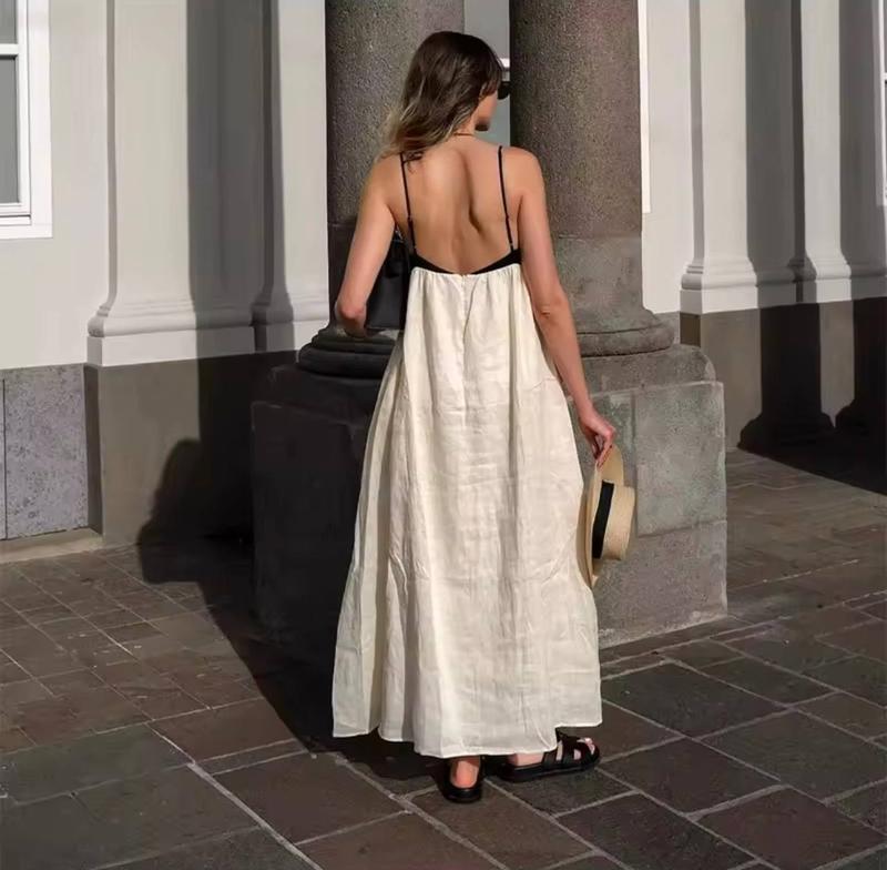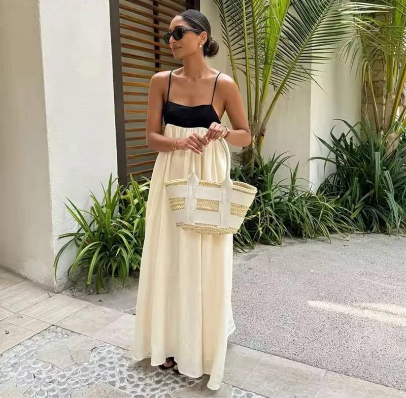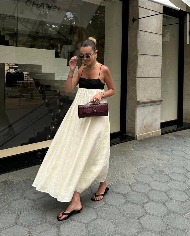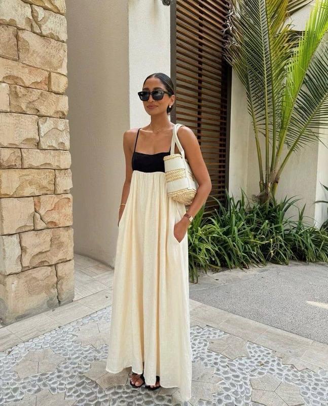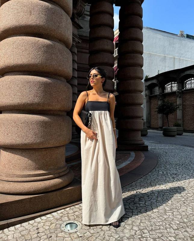 Сукня максі. Застібається на потайну блискавку на спинці. У бокових швах є кишені. Топ подвійний, не світиться.