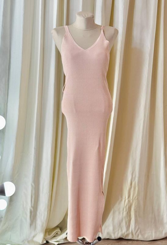Сукня з трикотажної резинки рожевого кольору GLAMIFI🛍️❤️🔥 Розмір - UK 8-10/ EUR 36-38/ USA 4-6/ S-M / 44-46. Склад : 100% поліестер. Виробник Турція. Сукня з V вирізом горловини та тонкими бретелями, спина напіввідкрита. Є боковий розріз. Гарно тягнеться. Додаткові заміри: повна довжина 130 см, напівобхват грудей 32 см (повний обхват 64 см) і тягнеться до 110 см, напівобхват талії 30 см (повний обхват 60 см) і тягнеться до 90 см, напівобхват стегон 33 см (повний обхват 66 см) і тягнеться до 120 см.