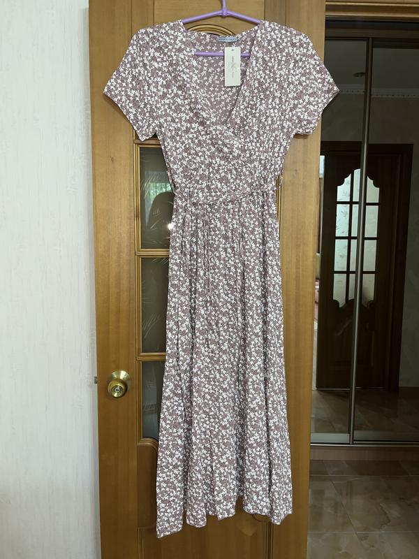 Груди: 45Талія(завищена посадка) на гумці 30, розтягується до 50Довжина: 126Гарна літня сукня з квітковим принтом та вузьким поясом, 100% віскоза