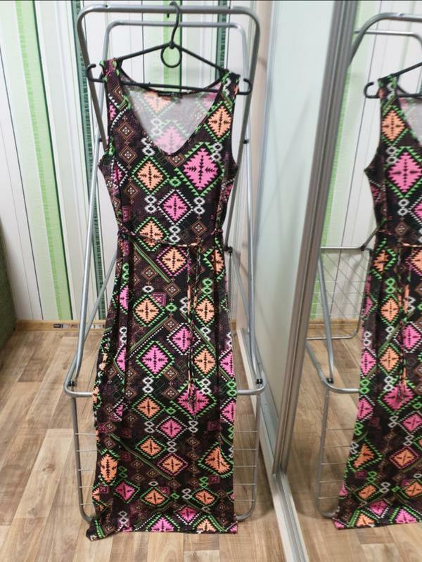 Приятная к телу ткань+тянется, длина 135 см. Состояние идеальное. Съёмный поясок. ПОГ 44 см прекрасно садится на грудь до 110 см, ПОБ 46 см на бедра до 115 см садится хорошо. На бирке размер 10. Прекрасно подчеркивает фигуру
