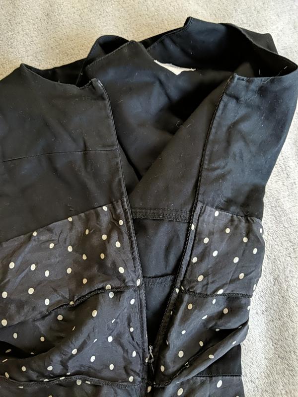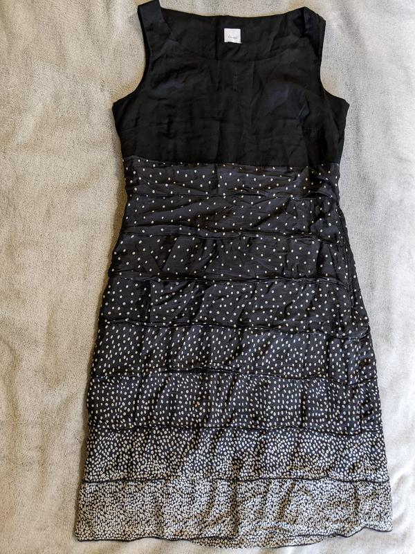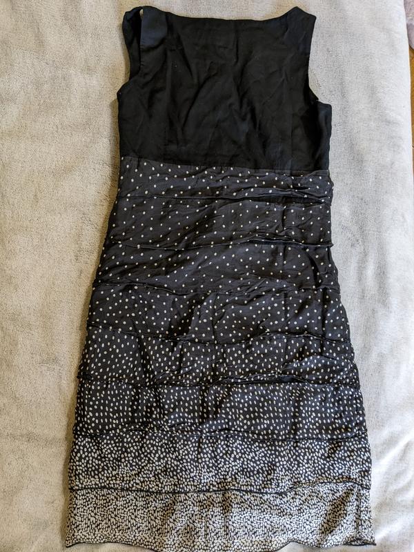 Сукня в горох, матеріал бавовна, зверху смужки в горох з поліестеру. Розмір М - L. ПОГ 45см ПОТ 40см, півобхват стегон 48-49 см довжина 92 см