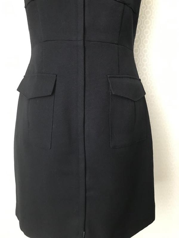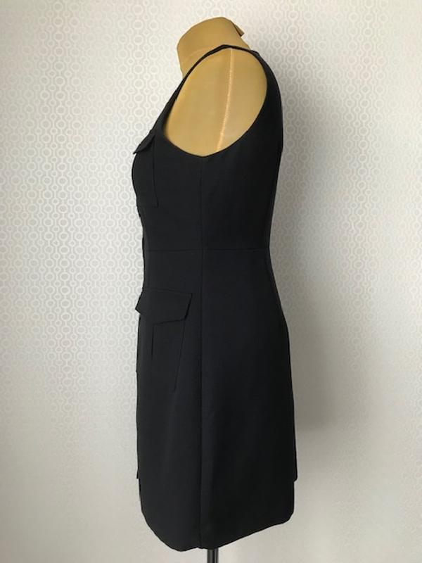 Стильное платье без рукавов / сарафан в стиле сафари / кежьюал стиле. Можно носить как длинный жилет с узкими черными брючками и белой блузой (либо гольфом контрастного цвета или в цвет) Насыщенный черны цвет, достаточно плотная ткань, которая хорошо держит форму. В составе полиэстер и вискоза. Застёгивается на металлическую молнию по всей длине. Отрезное по линии талии. Впереди четыре накладных кармана под клапанами - два выше линии талии и два ниже. На подкладке.