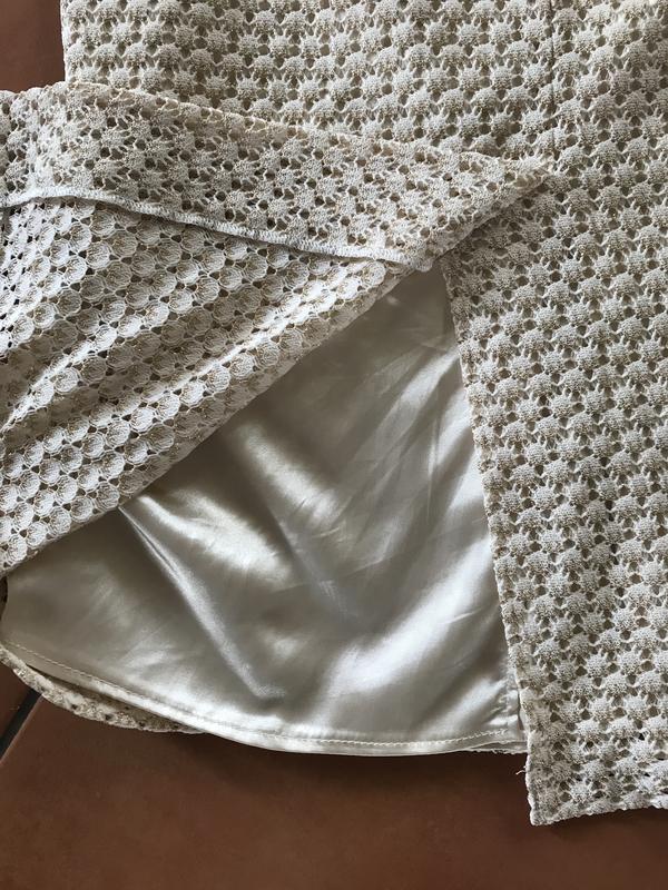Плаття святкове ,ніжне ,дуже гарне з підкладкою,молочний колір з люрекс ниткою Вдягнуто 2 рази,якісне і просто красиве , не пошкодуєте,приємне до тіла ,трошки тягнеться
