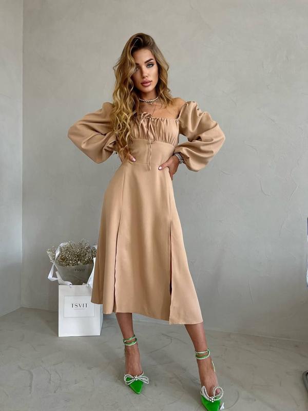 Шикарное платье из костюмной ткани с двумя разрезами по юбке 🥰