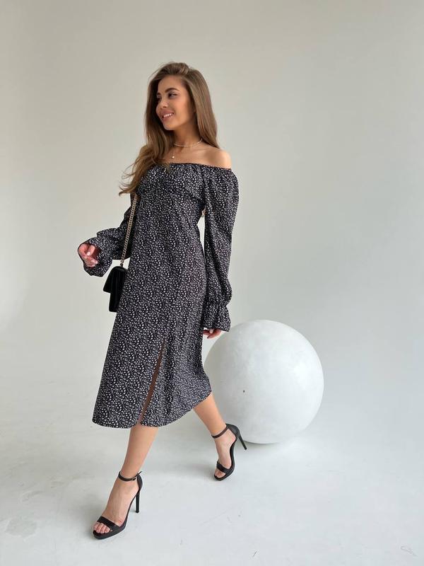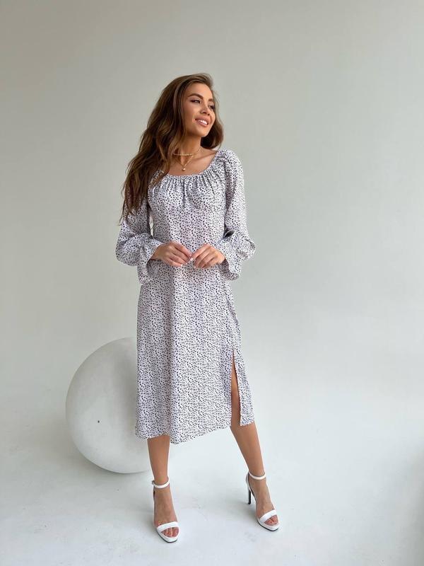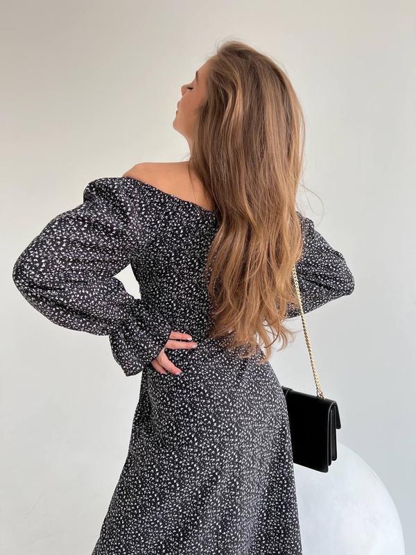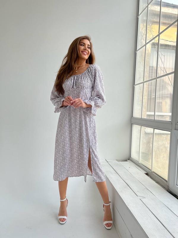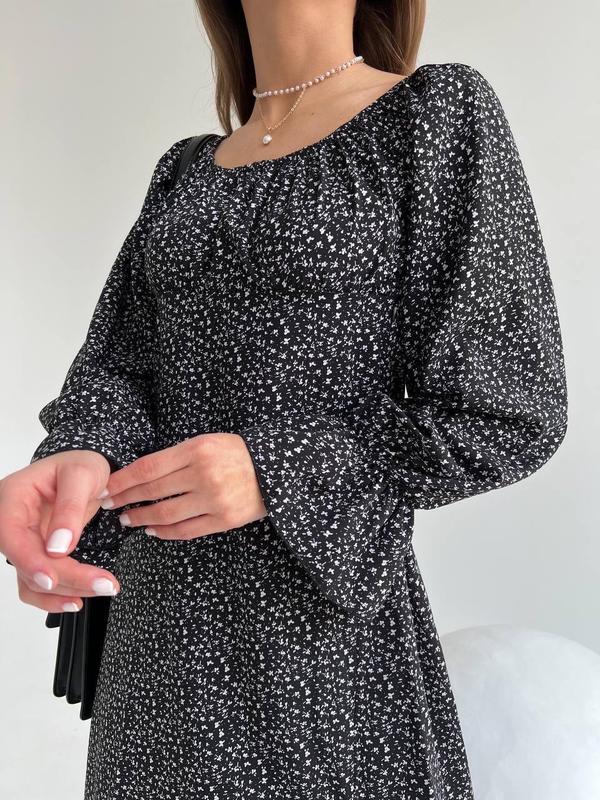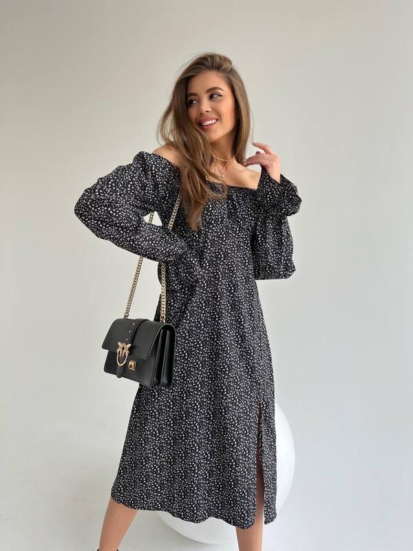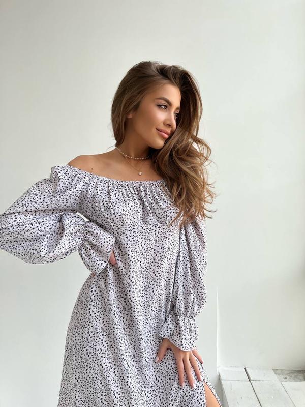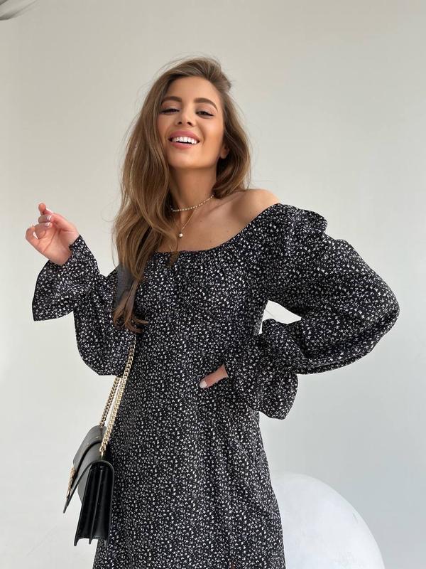 ПлатьеМод. 225 Размеры 42-44, 46-48 Тканина софт Цвета: черный, белыйпринт мелкие цветочки Манжетики и плечи на резинке, сбоку есть молния 42-44 ОГ 90 см Под грудью 76 см 46-48 Ог 96 см Под грудью 82 см