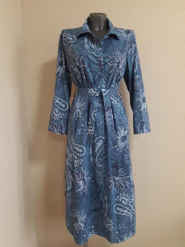 Красивая заметная,стильная модель летнего сезона!Модель с широким комфортным рукавом и с укороченным вариантом.Спереди полностью на пуговицах по всей длине.Платье со стильным отложным рубашечным воротником. Модель с заниженной спикой,округленым низом с разрезами по бокам,под пояс(на петлях),с карманами.Эффектный,всегда в тренде,принт "пейсли" и цветочный принт!Натуральная хлопковая ткань,люкс качества!Микс стилей и образов!