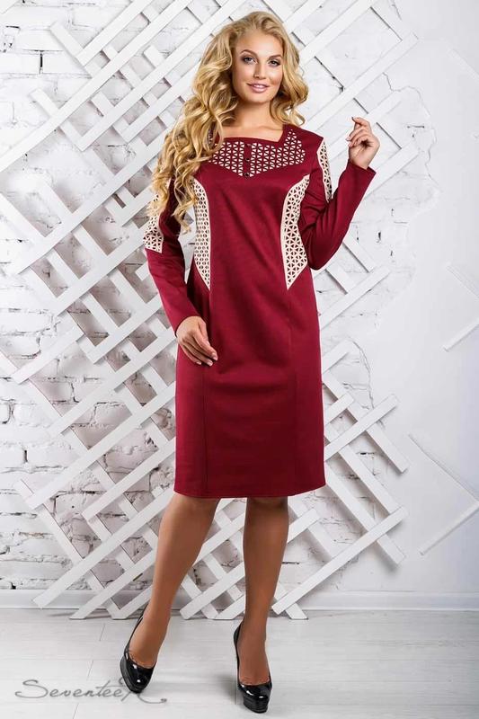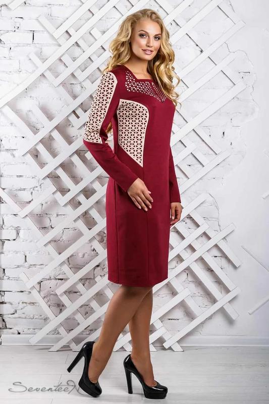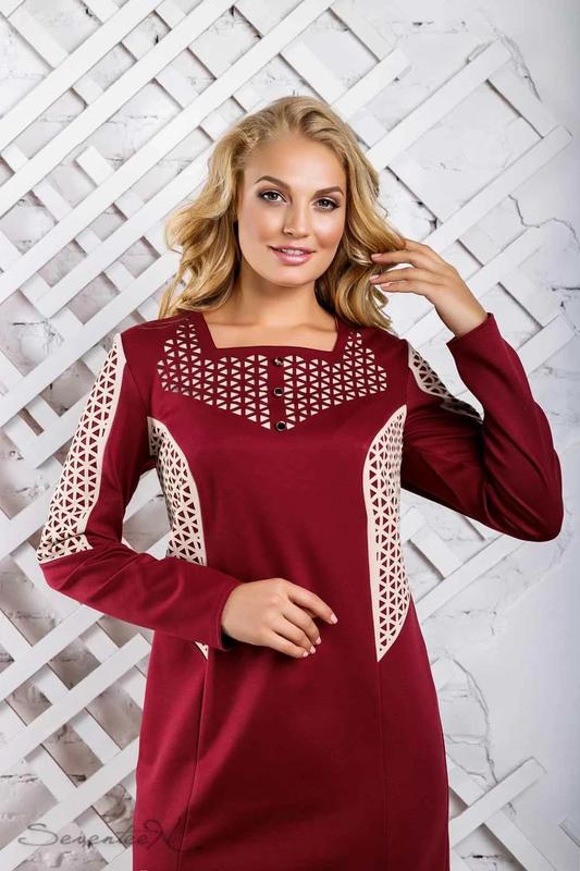 Красивейшее марсаловое платье с необычными вставками, декорированными