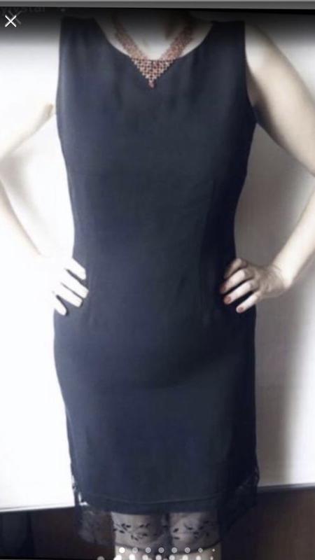 Красивое платье -футляр известного бренда, глубокого черного цвета на подкладке, к пройме внутри обработано той же тканью, от нее идет подкладка, находится на фото,круглый вырез, с левой стороны длинная скрытая молния для удобства, с фиксатором, благодаря длинным вытачкам спереди и сзади платье красиво садится по фигуре, изюминкой платья является его низ - прозрачная ткань с нежной вышивкой, сбоку два разреза, есть на фото, очень элегантно смотрится, с украшениями Всесезонное, эффектно с украшением, с пиджаком в прохладный время, с удобной обувью в офис - платье - футляр всегда в тренде! Доставляет стройности, удобно сидит на фигуре,. Фасон и состояние максимально показано на фото,Вказанный размер 12, stid40atch, но ориентируйтесь по замерам, ткань плотная, не тянется. Замеры: Длж по спинке от плеча до низа - 101, долж до прозрачной вставки -91, ш плеча -6, ш по плечам по спинке - 34, молния скрыта, имеет длин-31, пог под проймами -47, пот-40, по бедер-49, по низу 50, проймы - 22, дл подклады - 90, замеры выполнены в спокойном состоянии, оденет на модель рост 175, размер L, если какой-то замер важен- перемеряю точнее, обращение не имеет, ответным на все вопросы, отправлю удобной вам по почте после оплаты на карту Приват или Моно, считывайте в разделе « обо мне «, с безопасной оплатой и накладным платежом не работаю