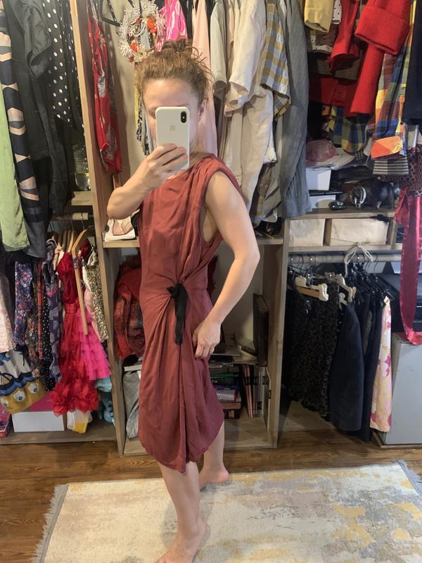 Очень красивое стильное платье, выполненное из виccы, очень комфортное. Оригинальный дизайн, выглядит очень изысканно. Одет на размер S. На бирке указан M-L